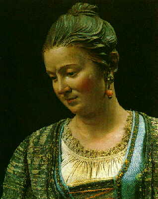 Giovane contadina con canestrello con piccioni, part