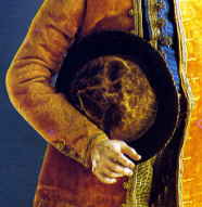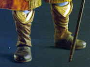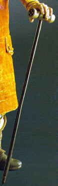 Il vecchio borghese, in abito elegante, sul quale indossa una zimarra in velluto, è ritratto col bastone da passeggio. E' uno di quei pezzi di grande qualità scultorea della collezione Perrone, che annovera i migliori esemplari del genere, recuperati direttamente nelle botteghe degli autori, o acquistati quando, già a partire dalla fine del Settecento, molti pastori delle collezioni "storiche" vennero messi sul mercato.