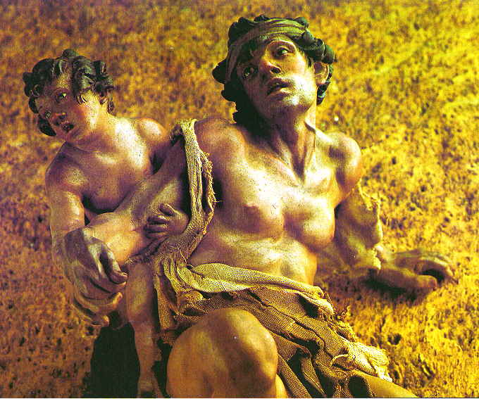 Sk_26: Mendicante storpio sorretto da un bambino. Napoli, Museo di San Martino, collezione Perrone.