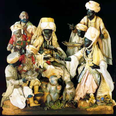 Questo commercio si mantenne vivo nel corso del Settecento, quando ad acquistare schiavi mori furono anche borghesi, da sempre emuli delle consuetudini aristocratiche. A parte il Re moro, i loro ruoli presepiali spaziavano tra quelli dei paggi, dei musici, delle guardie o dei mercanti, o apparivano relegati in mansioni pių umili, come valletti, facchini, portantini, a seguito di circassi, turchi e georgiani. Gli esemplari di more di condizioni agiate, spesso madri con piccoli al seno, sono invece piuttosto frequenti, come appare ad esempio, nell'esemplare della Reggia di Caserta che raffigura una madre mora in groppa ad un dromedario.