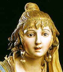 La fisionomia delle georgiane, nei tratti fini ed eleganti e nell'incarnato chiaro e lucente dall'aspetto smaltato, ottenuto con un paziente lavoro di finitura della patina policroma, spesse volte richiama, come in questo caso, il tipo di bellezza aristocratica del tempo, e si qualifica come un vero e proprio ritratto, ricco di connotati alla moda come l'acconciatura dei capelli raccolti in alto e ricadenti in morbide ciocche ondulate fissate da un nastrino a mo' di diadema, e l'uso delle perle.