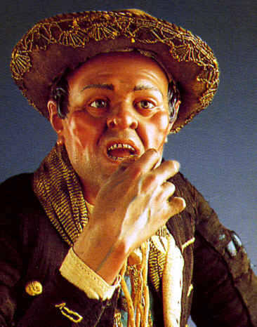 Sk_58: Mangiatore di maccheroni, Napoli, Museo di San Martino. Foto di Ugo Pons Salabelle Questa scheda, come le altre qui pubblicate, costituirono un supplemento de "IL MATTINO" da ottobre a dicembre 1994. In collaborazione con la Soprintendenza per i Beni Artistici e Storici di Napoli. A cura di Angela Catello. Foto: l'autore è indicato nella didascalia |